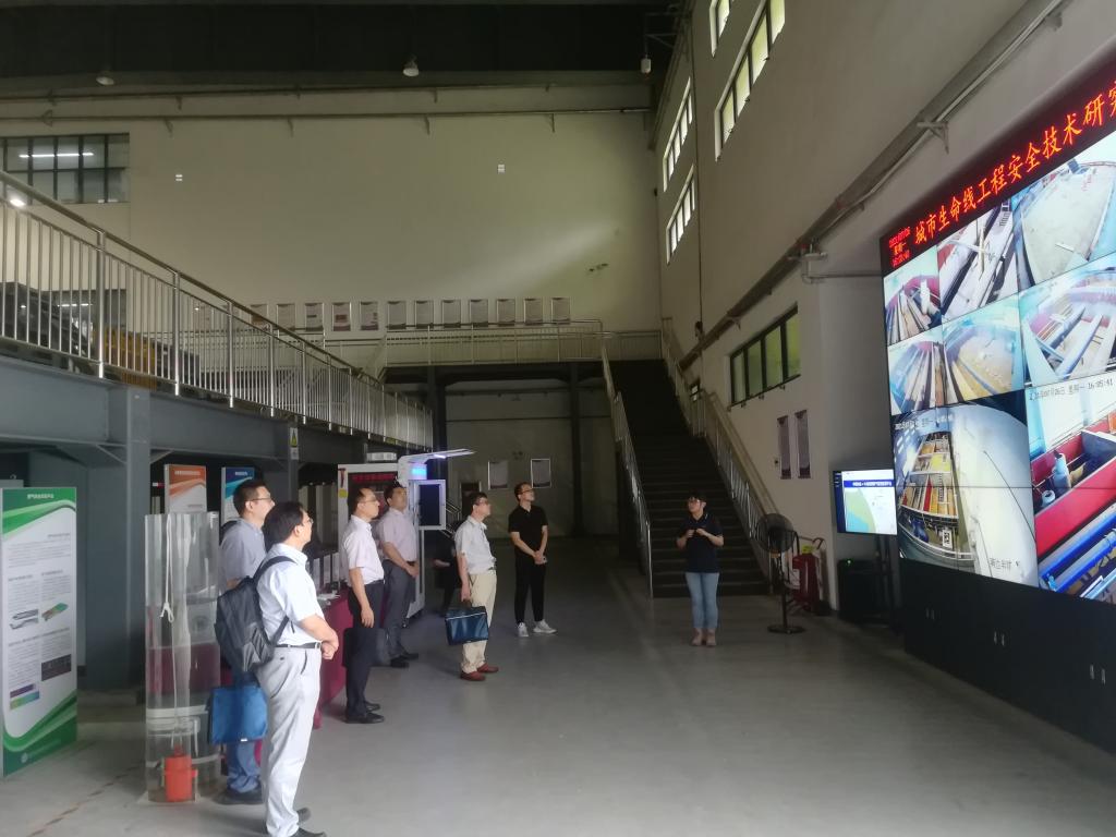 余学祥等实地参观了清华合肥院“城市生命线工程安全技术研究实验平台”、“灾害环境人员安全安徽省重点实验室”、“城市公共安全监测值守中心”,并就部分关键技术进行了深入交流;随后,清华合肥院技术转移中心主任助理袁睿在指挥监测大厅向余学祥等详细介绍了清华合肥院基本情况以及城市公共安全方面所取得的成果,并向与会人员演示了合肥城市生命线安全运行监测系统。
