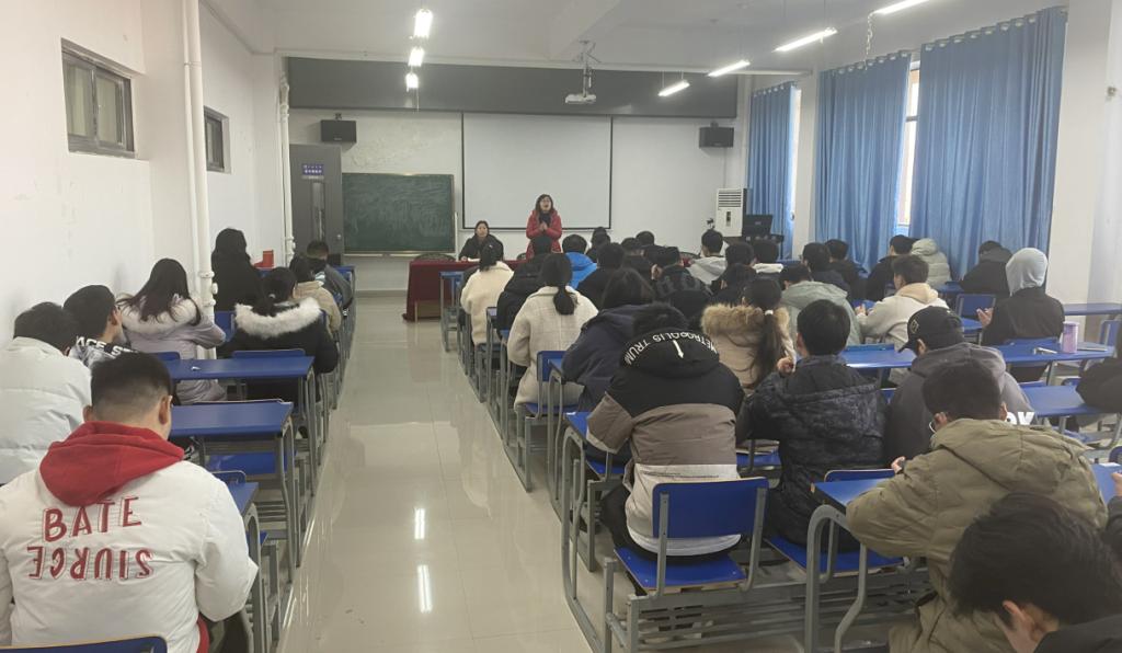 党委副书记孟静老师发言引导毕业班学生合理择业,强调同学们要树立正确的就业观和择业观,了解就业形势、就业政策、转变就业观念,大发