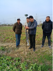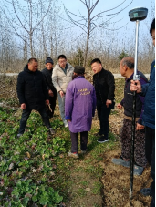 张文涛老师结合新华村的地理位置优势,采取建设蔬菜大棚方式来增加农村集体经济收入,赵兴旺一行采用卫星定位技术对“蔬菜基地示范点”项目中的土地权属界址点、界址线进行了详细勘察测定,为土地边界的测量提供了基础测绘保障。