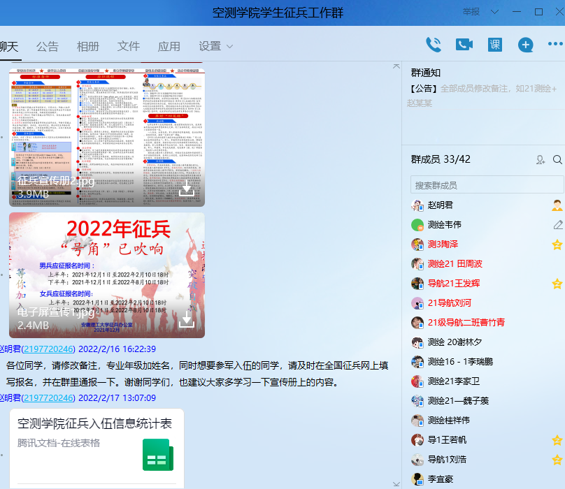 通过微信公众号推送发文、QQ群消息、谈心谈话以及线上政策宣讲等多种形式开展线上征兵入伍宣传活动。
