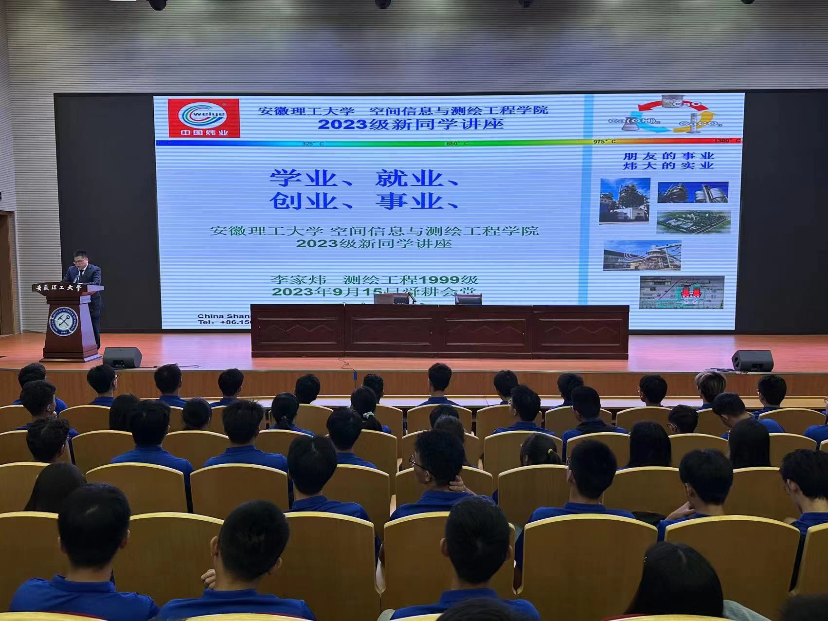 邀请,测绘工程2003届杰出校友、中国上海炜业实业有限公司总经理李家炜和测绘工程2004届杰出校友、南京信息工程大学柯福阳教授在校舜耕会堂分别为2023级全体新生作题为《学业-就业-创业-事业》和《智能时代测绘新技术,赋能新兴产业与个人发展机遇》的唤醒讲座。讲座由大发