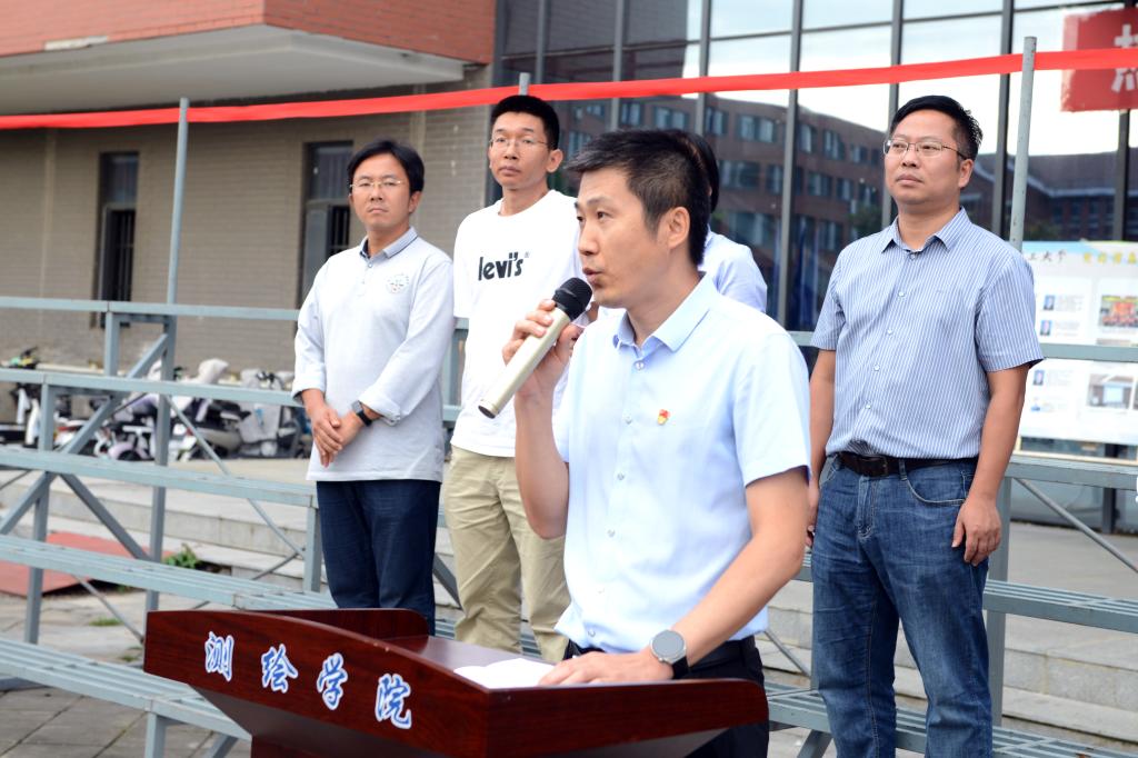 党委书记范洪喜进行致辞。范洪喜首先对2023级全体新生表示热烈祝贺与欢迎,他希望新生们扣好大学第一粒“扣子”,要把人生追求往高处立,主动关心国家前途利益,用青春理想、青春活力、青春奋斗,为人生之灿烂蓄势、为祖国之强盛聚能。同时向新生们提出三点期望:珍惜当下,不负韶华;树立目标,做好规划;知行合一,笃行致远。
