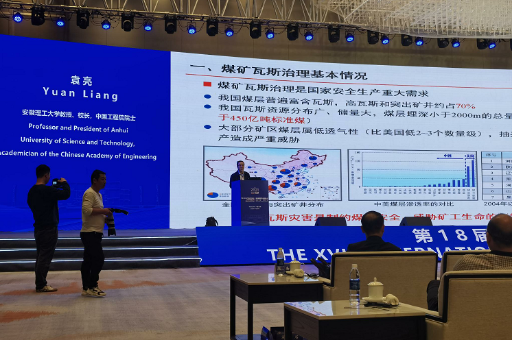 大会主旨报告环节,薛生教授代表校长袁亮院士做了题为“煤炭开发中瓦斯(甲烷)减排与低碳利用对策”的主旨报告。中国科大发