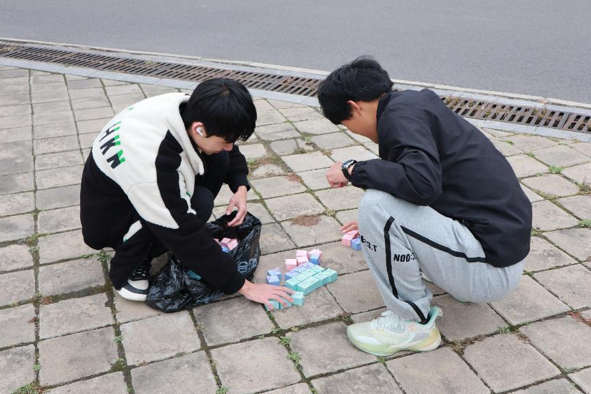 心理辅导站工作人员提前征集并准备了写有鼓励话语的纸条、快乐的事和序号(部分),激励同学们积极正向思考;然后由工作人员将纸条分别装入盲盒并提前藏于仰山广场附近。活动过程中,学生们都积极参与其中。当找到盲盒后同学们开心的分享盲盒中的“喜悦”,现场气氛融洽和谐,整个游戏的开展,规范合理,达到了预期目标,同时也缓解了同学们的焦虑,使长时间感觉身心疲惫的同学释放了积压已久的压力。最后,寻盲盒活动结束后,同学们回到了兑奖处进行集体合照留念,通过心灵的碰撞,同学们不仅扫去了心中的阴霾,更在校园中传递了温暖与力量。
