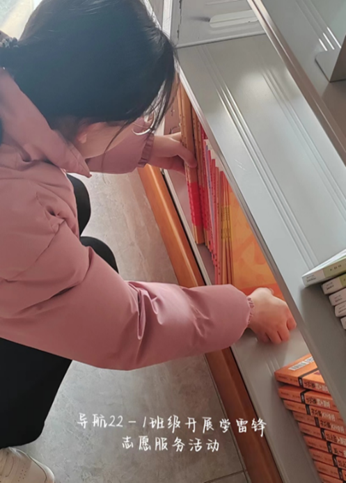 3月5日,导航22-1班团支部前往安理社区图书馆进行图书收纳归类、图书搬运等图书管理工作,为图书馆管理工作提供帮助。本次志愿活动整理图书近千本,活动时长共计四个小时,开展成效极佳,获得社区负责人高度表扬,为过往借阅书籍的人提供了良好的阅读环境,大大提高图书馆运行效率。同时也锻炼个人社会实践能力,增强了班级凝聚力与责任心,扩大大发