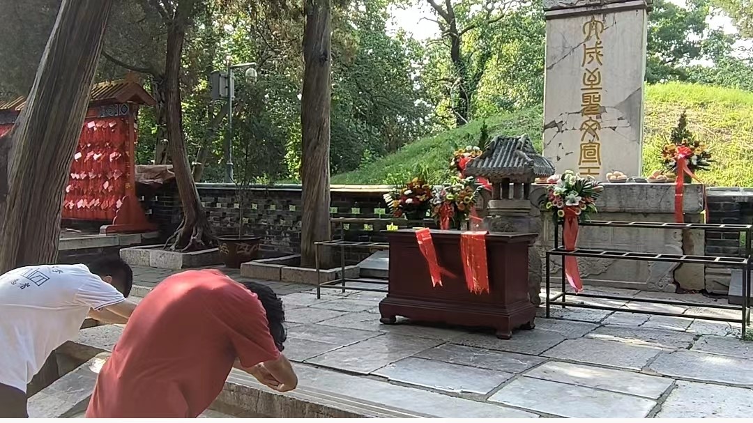 团队成员祭拜孔夫子墓碑