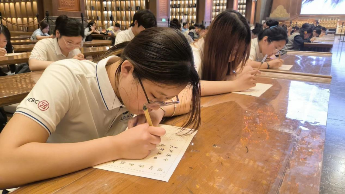 团队成员在大学堂书写临摹论语名言现场