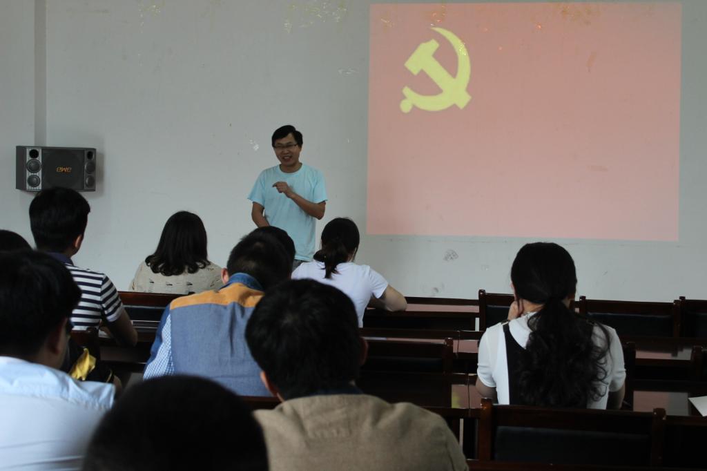 201会议室召开转正大会,讨论是否将中共预备党员杨旭、朱亚洲、刘潇鹏、李广赛4位同志转为正式党员。大会由研究生党支部书记张坤主持。