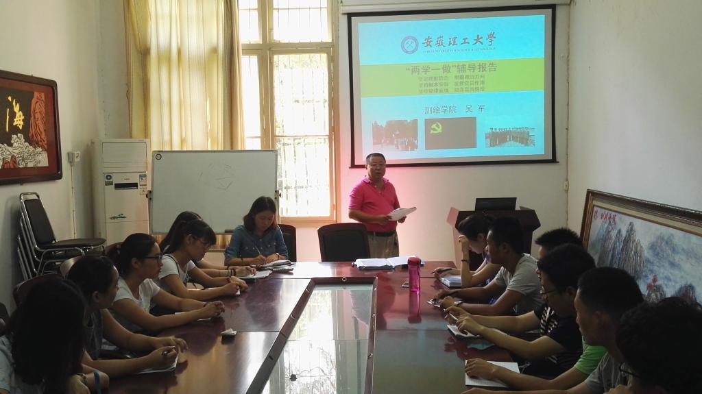 党委副书记吴军老师开展“两学一做”讲党课活动,讲座围绕“两学一做”第二专题“坚持根本宗旨,发挥党员作用”开展,两支部23名党员聆听了讲课。