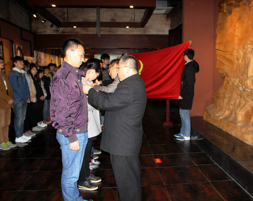 党委的要求,严于律己,勤于学习,勇于实践,争取早日成为一名合格的中共党员。全体预备党员在党旗下进行了宣誓。吴军等教师党员为预备党员佩戴了党徽。