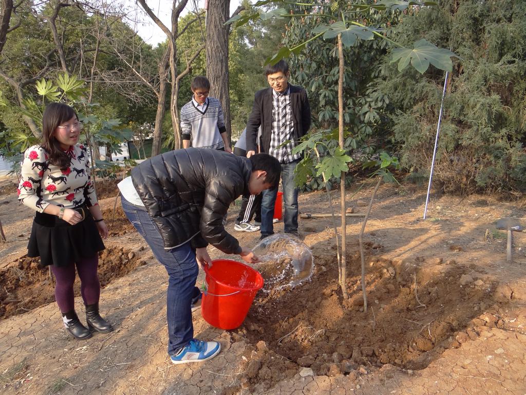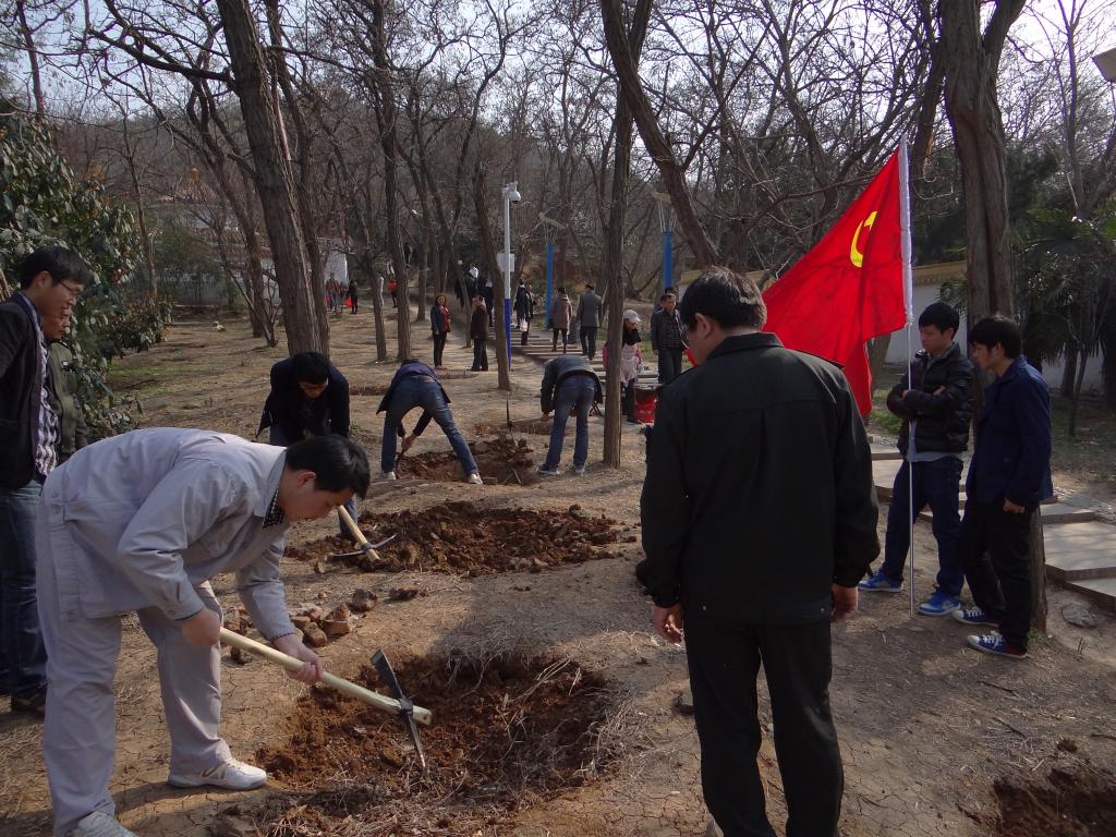 在淮南市园林局指定的区域,同学们分工协作,有的挖坑,有的整地,有的分苗,有的打水,个个干劲儿十足,劳动场面十分热闹。同学们的热情感染了前来爬山的市民,不少人还加入进来,一起浇水、填土。植树完毕,同学们向周围的群众义务宣传建设生态文明和美丽家园的意义,号召大家从自身做起,善待每一棵花草树木,善待我们共同生活的地球。