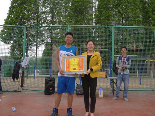 团委书记袁彦为冠亚军队伍颁奖并合影留念。测绘工程13-2班李恒基同学在比赛中表现突出,获得了“最佳球员”荣誉称号。