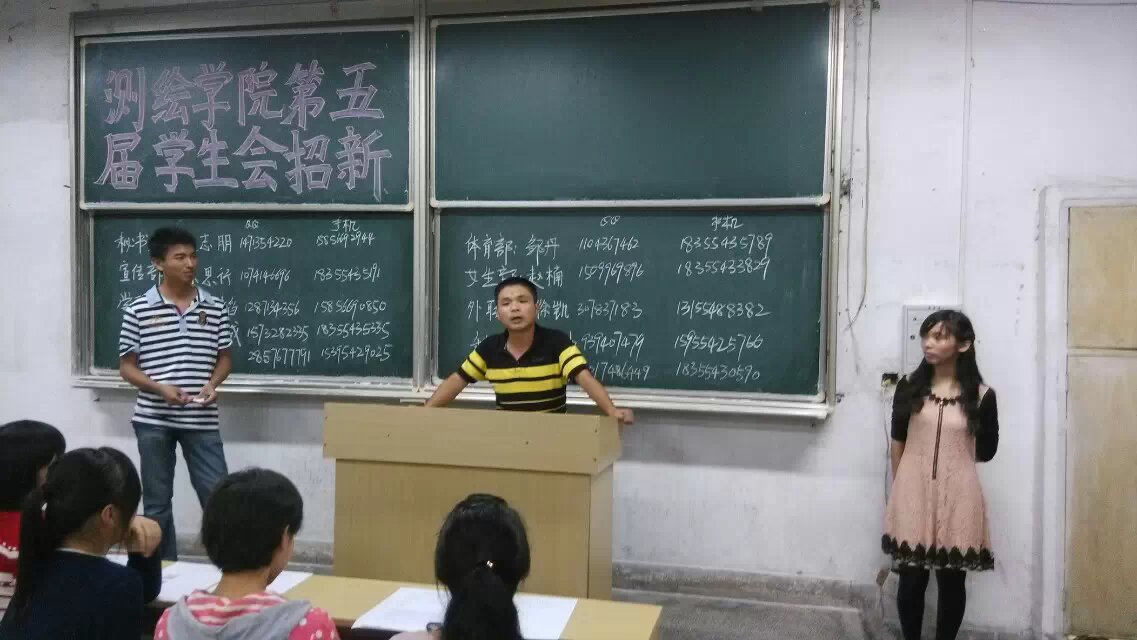 学生会和绿地通讯社的宣传单及报名表.随后,学生会九大部门的部长以及绿地通讯社的负责人按照事先安排好的顺序依次进教室宣传.新上任的各部部长们意气风发,用充满激情的演讲叙述着自己在学生会的收获,用十分精辟的话语宣传自己部门的优势.新生也被部长们的热情所感染,不时举手礼貌的向学长学姐们咨询一些问题,各部部长耐心的加以解答.持续两个多小时的招新宣传工作,四个教室里掌声,欢笑声不断.青年人的青春活力,也让充满古朴气质的合办楼重新焕发了生机!